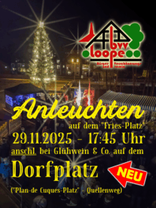 Neben den Aktionen, die vom BVV initiiert werden, finden Sie unter Unser Dorf Informationen über Sehenswürdigkeiten wie die Hängebrücke und die beiden Bergbaugebiete Castor und Bliesenbach. Historische Informationen über „Alt Loope“, inklusive der erweiterten Informationen zu den Historischen Tafeln, unter Heimatgruppe. Eine Zusammenfassung und Übersicht der Aufgaben des BVV finden Sie nun auch in dem hier verlinkten Flyer.