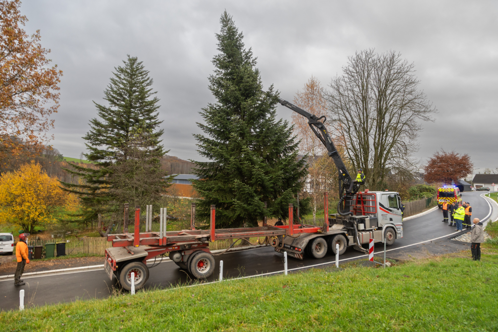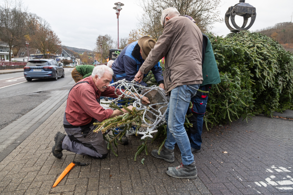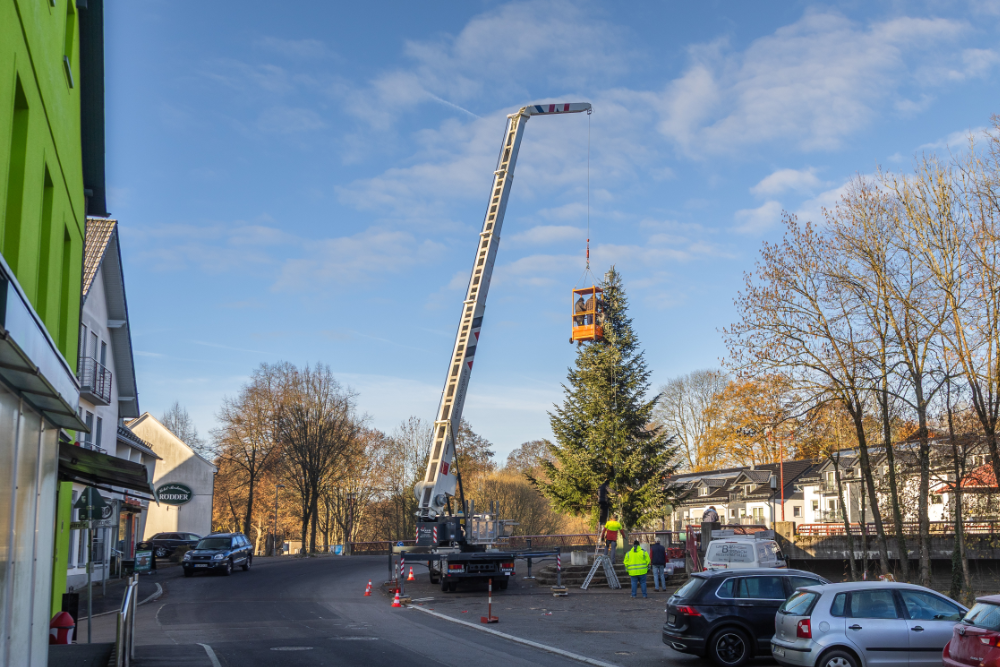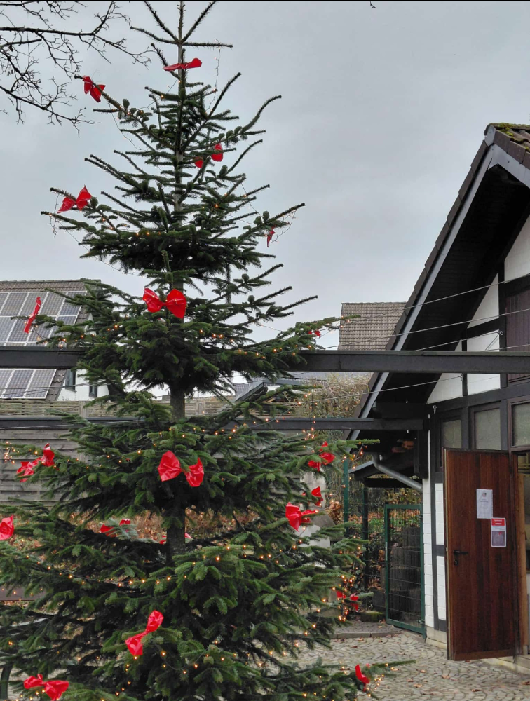Nachdem der Weihnachtsbaum in Vilkerath-Unterheide „gepflückt“ wurde und am vergangenen Samstag geschmückt wurde, wartet er am traditionellen Platz auf das „Anleuchten“ am 29.11.2025.