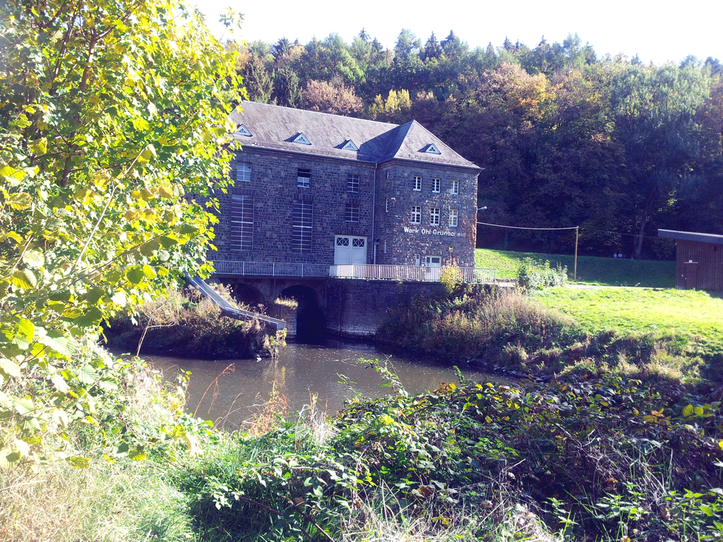 Das Werk Ohl-Grünscheid wurde im Jahre 1929 als erstes Wasserkraftwerk im Einzugsbereich der Agger durch das Kreiselektrizitätswerk (KEW) Dieringhausen in Betrieb genommen. Das Stauvolumen der Anlage beträgt 320 000 Kubikmeter, die Fallhöhe des Wassers 6,55 m. Zwei Maschinen erbringen eine durchschnittliche Jahresleistung von 2174 MWh (1 MWh = 1000 KWh)