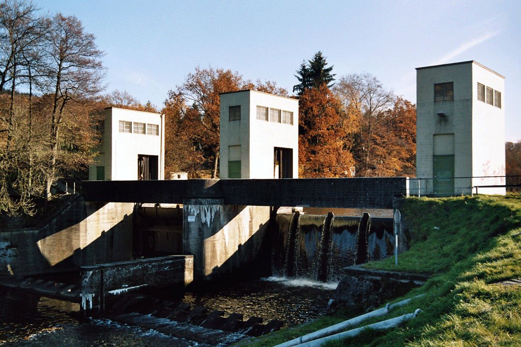 Zum Thema „Stauanlagen“ gibt es auch zwei historische Tafeln. Auf denen sind zu den jeweiligen Staustufen weitere und detailliertere Informationen aufbereitet.